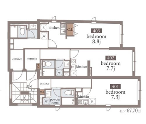 預計2021年8月竣工整棟投資公寓,永久產權,符合新抗震標準。位于東京都港區,2線2站可以利用,距都營淺草線【泉岳寺】站徒步2分鐘,JR山手線2020年新設車站【高輪ゲ-トウェイ】站徒步5分鐘,直通品川站2分鐘。周邊有羅森,711等多家便利店,買東西很方便。公寓南側約5.5m公道,鋼筋混凝土造4層,全8戶,1F約44.71㎡店鋪,2F~4F住居,1室1廳2戶,49.98㎡,1室5戶,20.74㎡~25.08㎡,生活配套設施齊全,衛浴獨立。我們協助海外投資客戶申請日本銀行貸款購房業務,需要在日本設立公司,以法人名義購買,貸款額度約60-70%、還款周期25-35年、貸款利率1.5%起。歡迎咨詢。