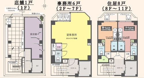 | 房型 | 店鋪×1 事務(wù)所×6 住居×8 | 朝向 | / |