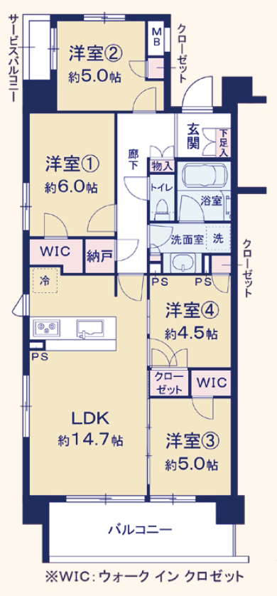 樓層:4層 三面朝向角部屋