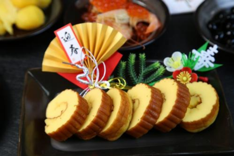 伊達(dá)卷是由魚蓉、蝦蓉及雞蛋等制成的一種淡淡香甜的蛋糕卷,由于看起來像一個卷軸,承載著人們對知識的向往和增漲知識的愿望,有學(xué)業(yè)進(jìn)步的寓意。