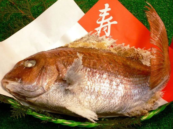 鯛魚的日語發(fā)音與日語“可喜可賀”相似,一語雙關(guān)有恭喜吉慶節(jié)日的寓意。而且鯛魚是日本的“財神”惠比壽手里拿著的吉祥物,代表著饕餮盛宴物資豐富,新年宴席“連年有余”的意思。