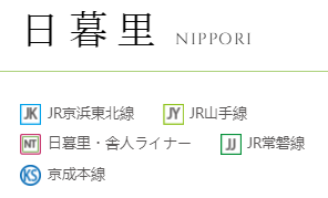 除了山手線外,日暮里站也有其他重要的線路經過,比如乘坐京濱東北線到達赤羽約13分鐘、到達西川口約24分鐘等,同樣非常方便。