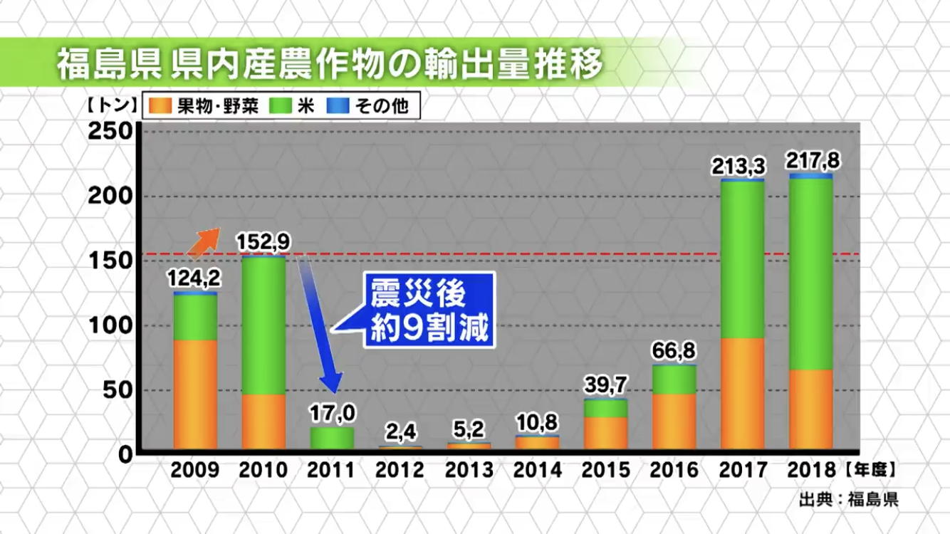 但是,不管怎樣,由福島縣出口的農作物、海產品、食品等,也都逐步恢復甚至超過了震前的出口水平。