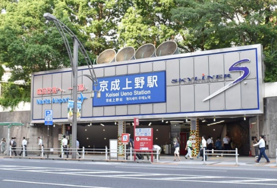 從JR上野的“不忍出口”出站步行到京成上野車站,約5分即可到達。從京成上野車站僅需45分鐘就可以直達成田機場,車站設有特急“Skyliner”的專用售票處,到機場票價2,470日元,對于乘坐成田機場的人來說非常便利。通過京成車站后面的樓梯,可以直接進入“上野恩賜公寓”,這是日本第一個公園,也是著名的賞櫻圣地,另外這里還有美術館、博物館、科技館等,非常值得一逛。