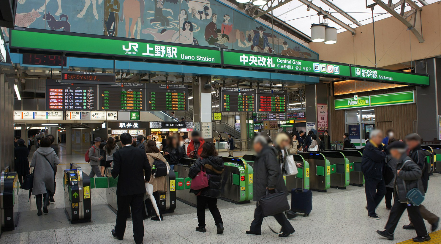 上野車站內路標指引清晰,設有便利店、餐飲店、時尚的商業(yè)設施等。是對上班族非常友好的車站。從中央口通往站外的各地也很方便,阿美橫丁商業(yè)街和上野公園、上野動物園等,都是車站周邊非常有名的地方。