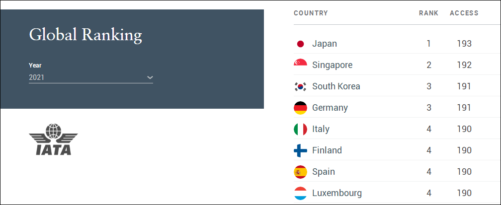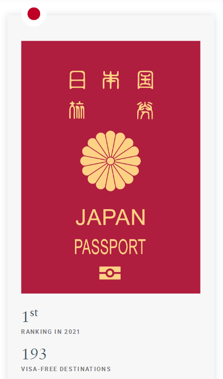 而根據全球最有權威性的亨利護照指數(Henley Passport Index)*匯編的數據顯示,2021年日本護照的免簽目的地為193個,排名全球第一。