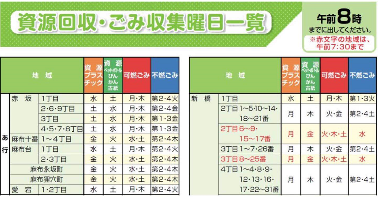 還有一件有趣的事,就是有時候家里有實在有想處理的垃圾,又趕不上本街區丟棄日期時,也可以查查周邊街區的排期表。而大半夜的拎著垃圾袋走幾個街區,只為了扔垃圾的情況也時常發生。只是大多數日本人都會覺得不好意思,盡量避開可能遇見熟人的路線,偷偷的去倒垃圾。