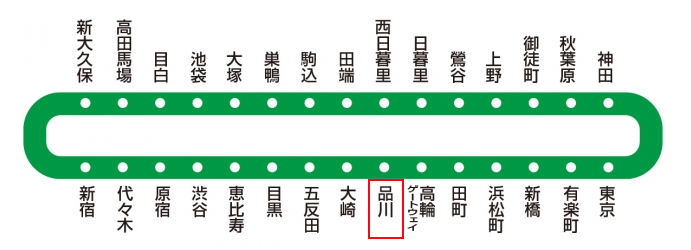 山手線、常磐線、橫須賀線、東海道本線、日本鐵路京濱東北線根岸線、東海道新干線、京急本線。
