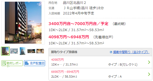 車站周邊陸續(xù)有站新建項(xiàng)目上市,距JR山手線品川站步行18分鐘,戶型為1DK~2LDK,面積為31.57~58.53平方米的新建公寓的售價(jià)為3400萬日元~7000萬日元。