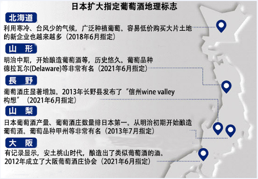 關于日本葡萄酒的產地標識,此前只有2013年指定的山梨縣和2018年指定的北海道。在標識上明確注明產地,將成為葡萄酒品質的保證,提高國際競爭力。2021年6月底日本的長野、山形、大阪3個府縣同時被指定了標識。各地還紛紛新建葡萄酒莊,希望能追趕歐美等葡萄酒發達國家。