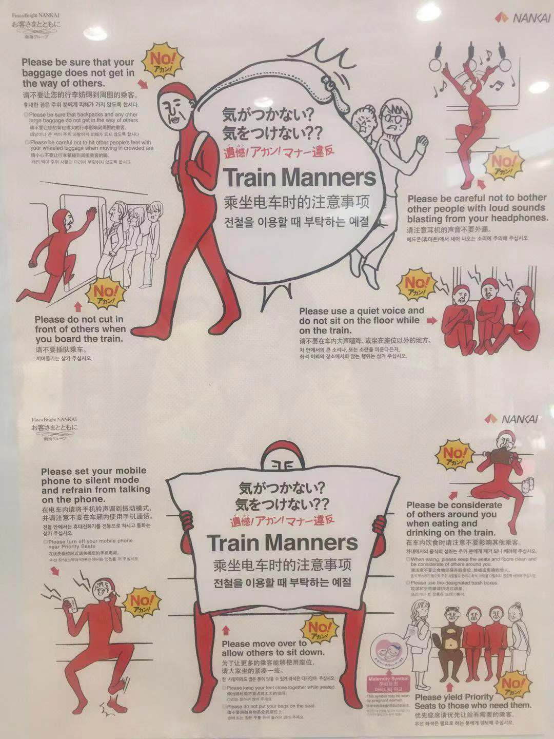 日本的電車,以車廂內(nèi)安靜、無飲食等優(yōu)點(diǎn)聞名于世,據(jù)說這也是日本人高素質(zhì)的表現(xiàn)。而日本電車文化的發(fā)展,其實(shí)與日本民營鐵道協(xié)會每年的調(diào)查也有一定的內(nèi)在聯(lián)系。在日本,全國73家私營鐵道公司加盟的日本民營鐵道協(xié)會,每年都會實(shí)施“車站及電車內(nèi)困擾行為排行榜”調(diào)查。