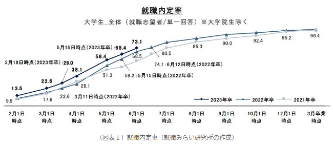 另外,日本各大企業對2023屆春季畢業生的爭奪戰也正在如火如荼地進行中,截至2022年6月的就職內定率已超過7成,恢復至疫情前的水平。在畢業前的較早階段就給意向畢業生發送內定通知書,也是日本企業在“人力短缺”的危機感之下,盡早“鎖住”優秀畢業生的常規方法。