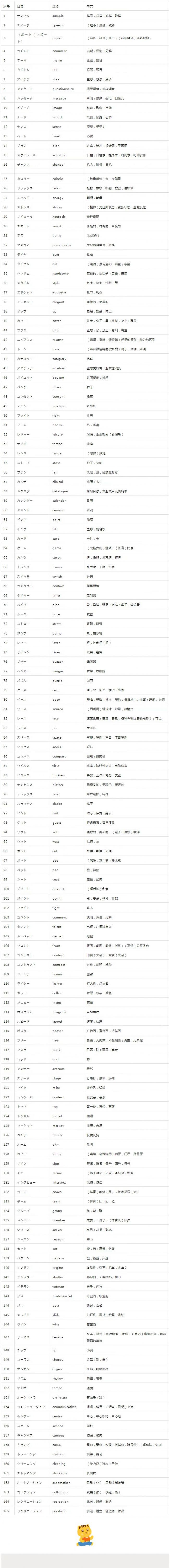 附:常用的英日對照詞匯表: