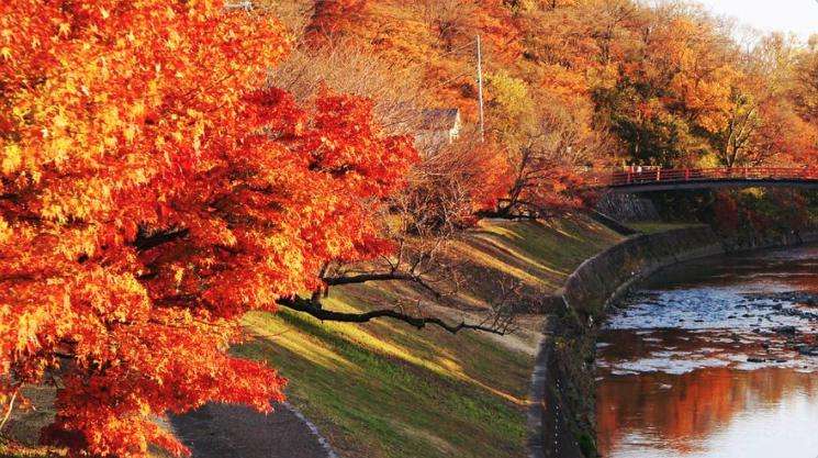 龍?zhí)锎ê优现两穸加醒泳d2公里的紅葉樹和楓樹,是非常人氣的觀賞紅葉的景點(diǎn),每年11月的深秋季節(jié),就會(huì)有很多游客到此游玩。