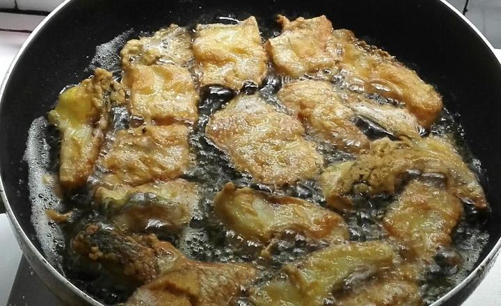 *油炸約1分鐘后,將魚塊翻個(gè)身,再炸1分鐘,即可出鍋。