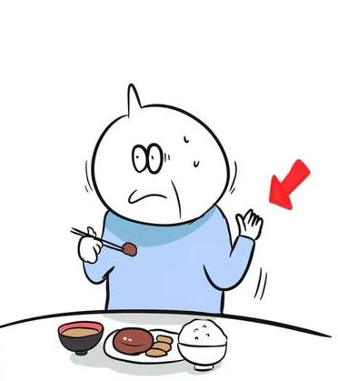 日本人習慣跪坐在地板上,開飯前雙手應分別放在腿上,不能像空姐那樣交叉雙手疊放在腿上,這樣容易引起擔心。開始吃飯的時候要說“我要開動啦”,以示敬意和感恩,且吃飯全程雙手都應該放在桌子上。一只手拿筷子吃飯,一只手放在桌子下面會被認為沒有教養,愛搞小動作之嫌,或是別有用心,容易造成別人的提防。