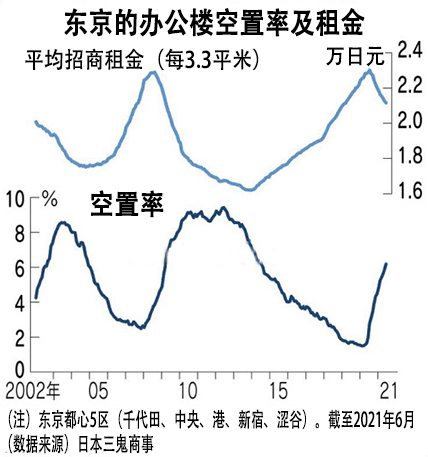 主要受疫情的影響,日本為了防疫需要將傳統的辦公模式改為“在宅辦公”,并且有望常態化。某些知名大手企業也出售總部辦公大樓,改為租房辦公,有些企業的辦公室面積縮小,甚至僅保留約原來的1/2或1/3的面積。