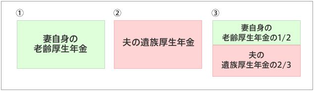3. 遺孀自身老年厚生年金的1/2和丈夫遺屬厚生年金的2/3