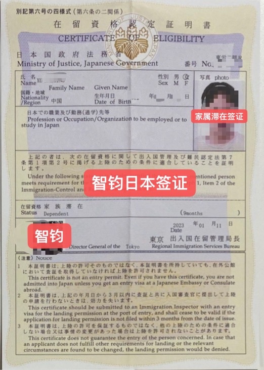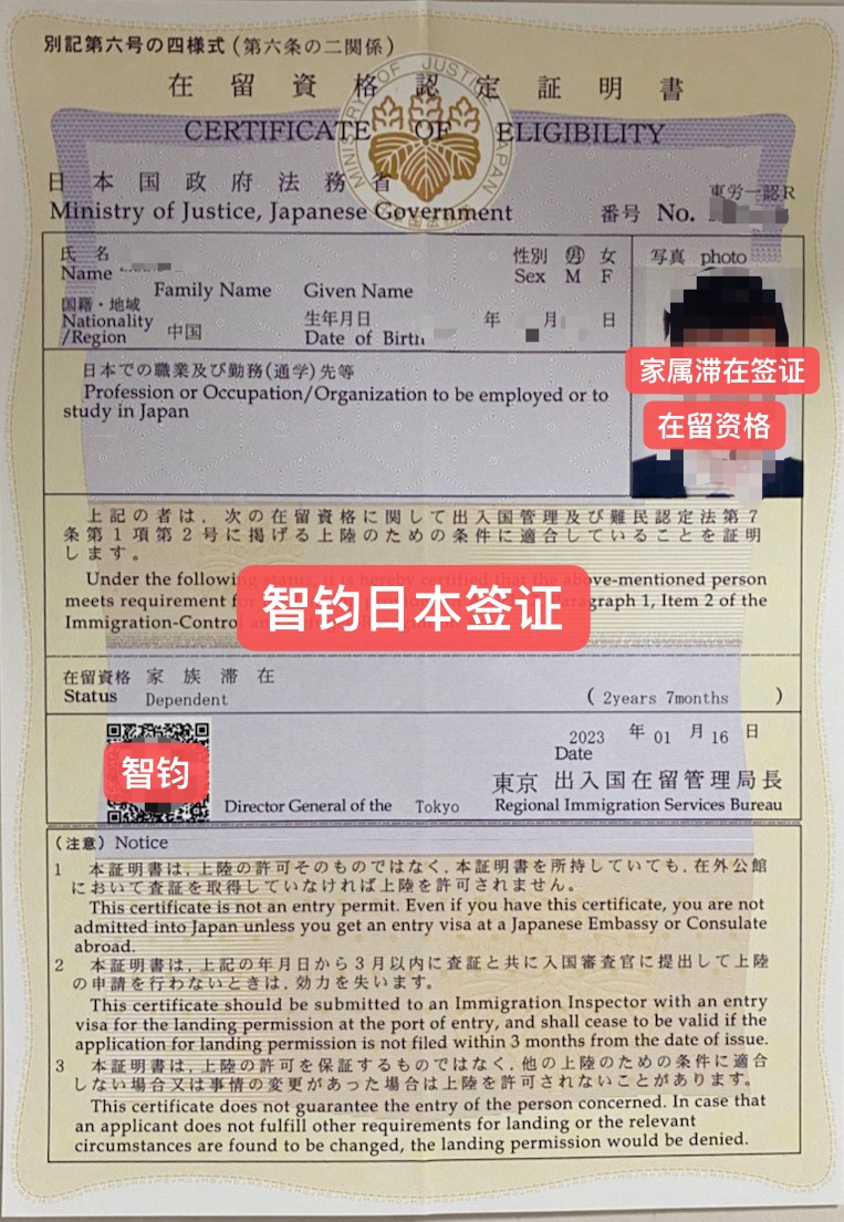 日本家屬滯在在留資格下簽案例