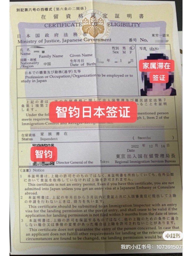 日本家屬滯在在留資格下簽案例