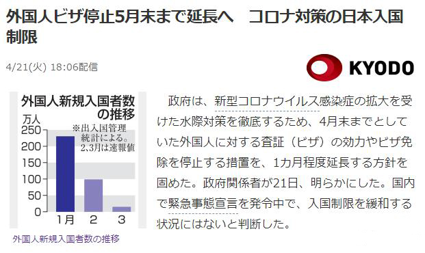 根據(jù)此前發(fā)布的消息,該限制措施原定實(shí)施至4月末。由于疫情目前在全球的大爆發(fā),現(xiàn)日本政府已基本決定將這一措施期限暫延長一個月至5月末。至于何時將取消這一入境限制政策,預(yù)計將會在日本國內(nèi)疫情得到緩和的時候,也就是在解除緊急狀態(tài)后。