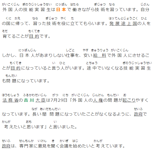 法務省の古川大臣は7月29日「外國人の人権の問題が起こりやすくなっています。長い間問題になっていたことがなくなるように、政府で考えたいと思います」と言いました。