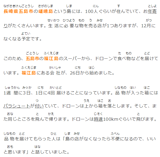 このため、五島市の福江島のスーパーから、ドローンで食べ物などを屆けています。福江島にある會社が、26日から始めました。