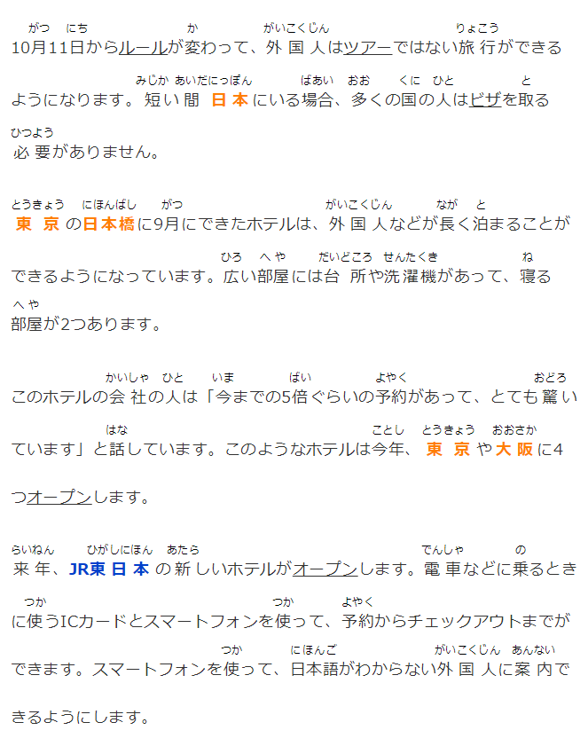 10月11日からルールが変わって、外國人はツアーではない旅行ができるようになります。短い間日本にいる場合、多くの國の人はビザを取る必要がありません。