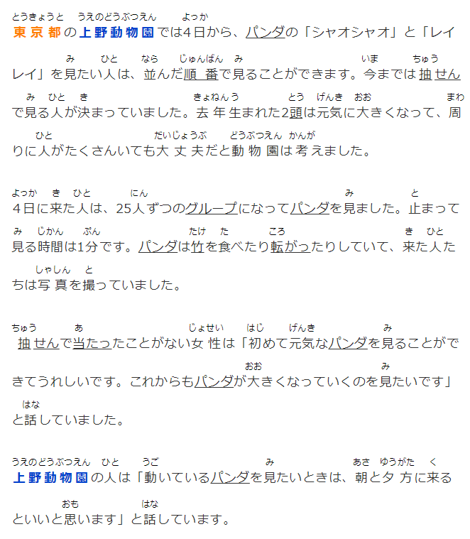 東京都の上野動物園では4日から、パンダの「シャオシャオ」と「レイレイ」を見たい人は、並んだ順番で見ることができます。