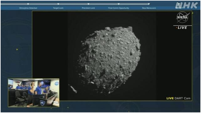 NASAは26日、計畫どおり、探査機がターゲットとなる直徑160メートルほどの小惑星「ディモルフォス」に時速およそ2萬2000キロで衝突したと発表しました。