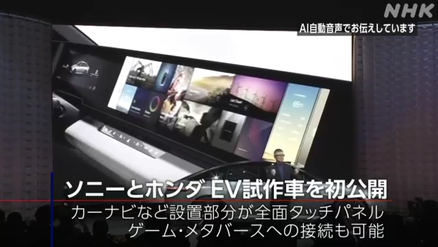 ソニーグループとホンダが共同出資して去年9月に設(shè)立した新會(huì)社「ソニー?ホンダモビリティ」は4日、開発を進(jìn)めるEVの試作車をテクノロジー見本市、CESが開かれるラスベガスで初めて公開しました。