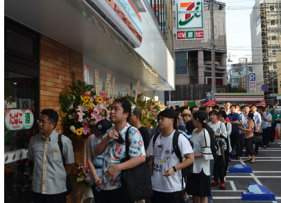 在沖繩縣那霸市中心地區開設的7-11那霸松山1丁目店,在11日早上7點開店之前,已有約200人排隊等候。排在第2位的是當地某大學1年級學生宮里盛大(18歲),他與友人5點半過后便來到這里。宮里表示“有傳聞說7-11的飯團好吃,我們想確認一下它和全家 (Family Mart)及羅森(LAWSON)出品的飯團的不同之處”。