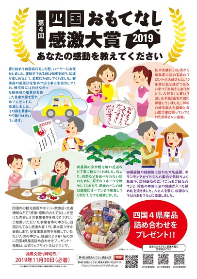 近日,“四國款待您之感激大獎2019”(日文為:四國おもてなし感激大賞2019)在向觀光客等人群征集享受服務及得到幫助過程中的溫暖瞬間、印象深刻的故事、插曲等素材的活動中發(fā)生了烏龍事件,陷入了投稿時即使在網(wǎng)頁上發(fā)送素材也無法送達的狀態(tài)。主辦該活動的四國觀光協(xié)會聯(lián)合事務局,正在呼吁大眾再次投稿。
