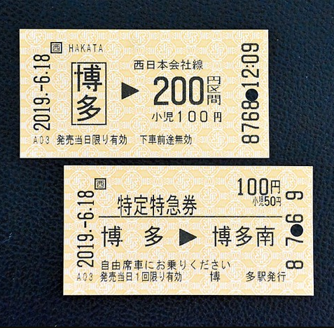 實際上,來到JR博多站,查看新干線乘車處檢票口附近的售票機后發現,真的有“300”這一數字。乘車券200日元(約合人民幣12.8元)、特急券100日元(約合人民幣6.4元),均為自由座席,兒童半價。這一區間為JR博多南線的博多站至博多南站之間。單程距離為8.5公里,行駛時間為8分鐘。