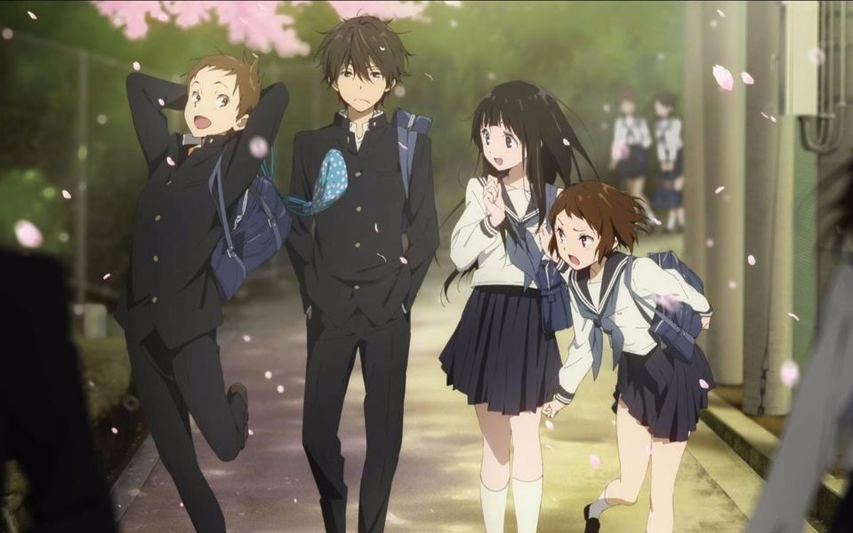 然后是《冰菓》(2012年)的大結局第22集。以鄉村風光為背景,纖細地描繪出缺乏朝氣的少年和文靜的女主角,高中生男女之間的距離逐漸接近至“愛情”的酸甜與焦急。