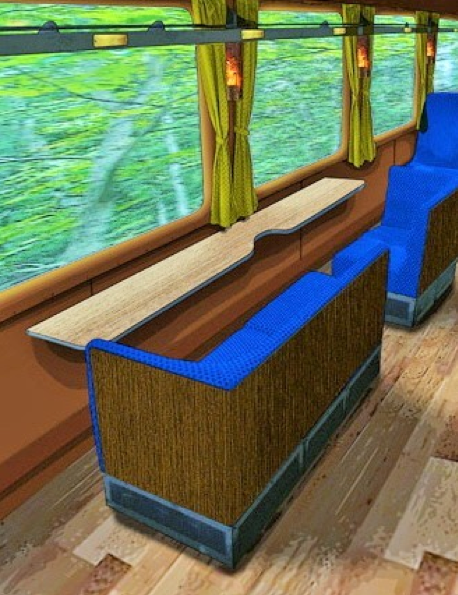 為了讓乘客能夠欣賞沿線窗外的景色及紅葉,這列觀光列車在座席的配置上下足了功夫。該車除作為周末運行的“急行MORIYOSHI”專用車輛之外,還將在活動及包車時加以靈活運用。