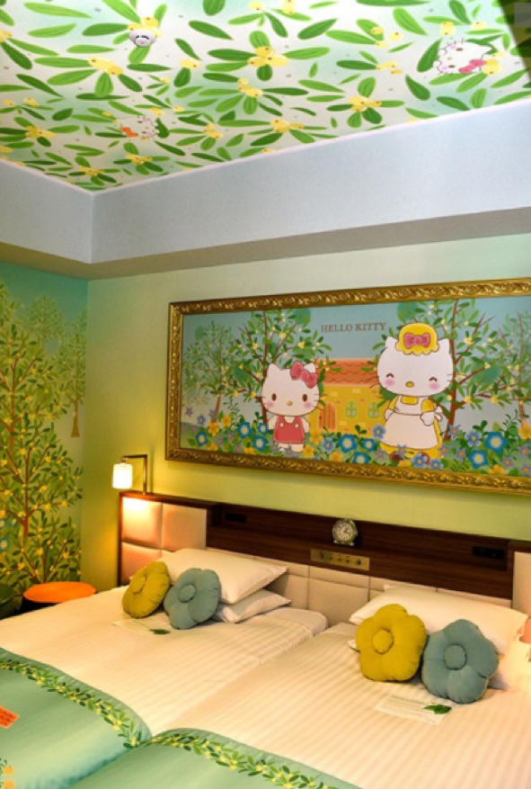 據悉,該主題客房分別為大小為20平方米,供1至2人用的“比偲奇之森客房”,以及以來到位于森林中的Kitty家玩耍為概念和大小為30平方米,供1至3人用的“散步 in 關西客房”。形象的表現了Kitty巡游關西各個觀光地的情景,非常適合家庭住宿。