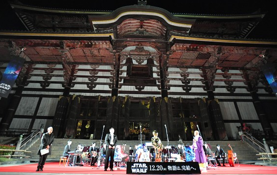 據悉,東大寺曾在752年,舉行大佛開眼供養會時,由印度僧人擔任導師,表演了盛大的樂舞。此次電影《星球大戰》音樂會便是效仿這一故事,舉行的祈愿電影大賣的音樂會活動。
