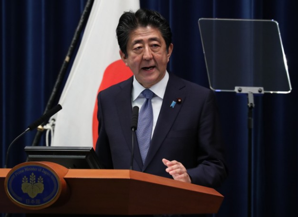 日本安倍晉三首相與6月18日在首相官邸召開記者會,宣布將全面解除為防止新冠肺炎疫情而提出的移動自我約束的要求。
