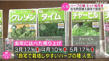 在日本,因受新冠肺炎疫情的影響自肅在家,容易栽培的香草種子等盆栽種子的銷售額在網(wǎng)絡(luò)銷售中大幅增長。