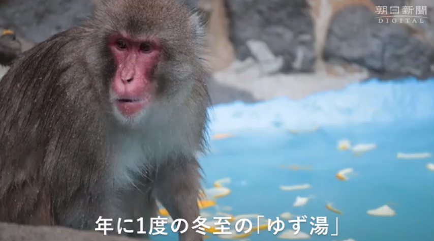 12月22日冬至這天,位于日本福岡市中央?yún)^(qū)的福岡市動物園的猴山,迎來了一年一度的“柚子浴”活動。