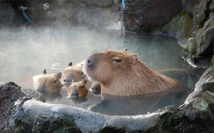 寒冬來臨,隨著天氣的不斷轉冷,位于日本埼玉縣兒童動物自然公園(埼玉縣東松山市)的“水豚溫泉”,已經成為了園內的一道冬日風景線。