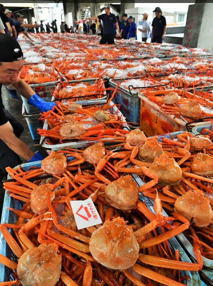 9月4日,今年紅楚蟹的首次競(jìng)拍在兵庫縣香美町的香住漁港舉行。在日本,紅楚蟹有著日本海秋之味的稱號(hào),被當(dāng)?shù)厝朔Q為“香住蟹”,非常具有人氣。據(jù)了解,今年紅楚蟹競(jìng)拍的最高價(jià)格又創(chuàng)新高。